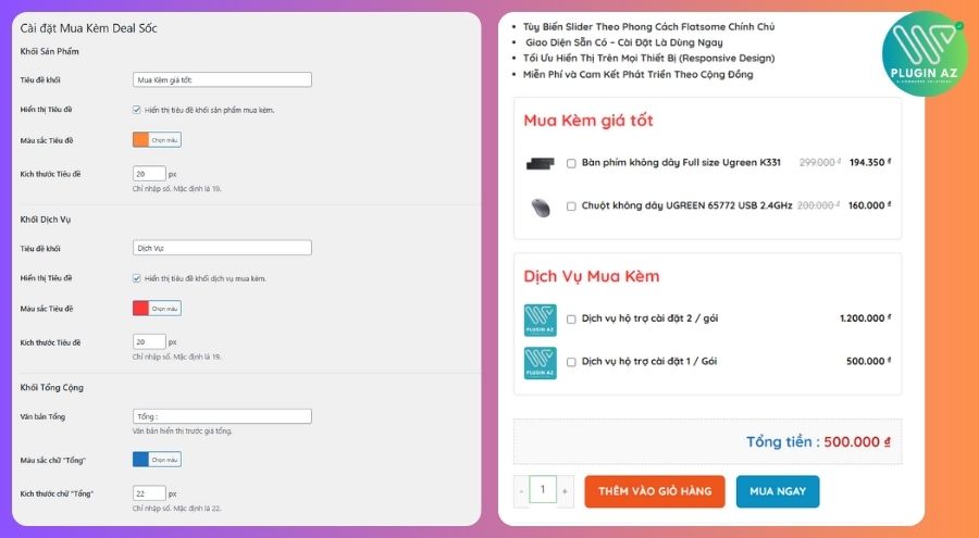 Tác dụng nổi bật Plugin AZ Mua Kèm Deal Sốc WooCommerce